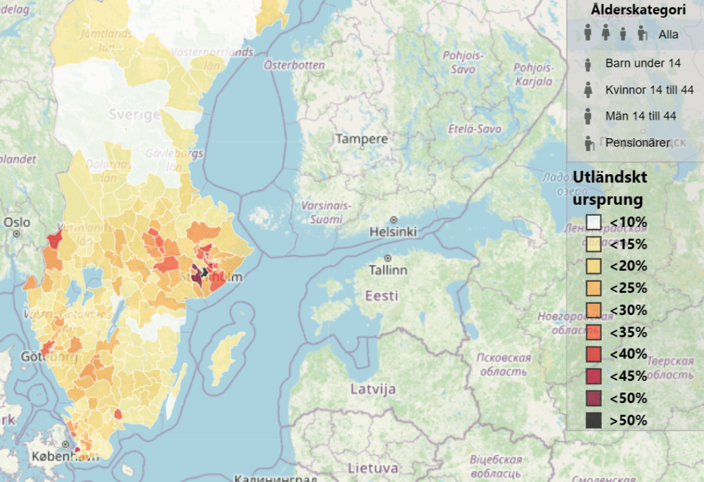– Det går inte helt att bevisa teorin fel eftersom det inte finns tillräckligt med underlag. Den säger sig vila på statistik från SCB, vilket är delvis sant. SCB skiljer på utrikes födda, personer med utländsk bakgrund och inrikes födda med två utrikes födda föräldrar. Migrationskartan vidgar begreppet till att innefatta så gott som alla definitioner. Här räcker det med att en av dina föräldrar är födda i ett annat land, exempelvis Norge, för att du ska räknas som invandrare och vara en del av beviset för detta påstådda folkutbyte.