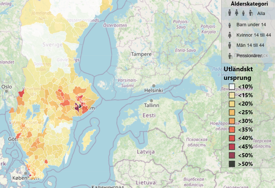 – Det går inte helt att bevisa teorin fel eftersom det inte finns tillräckligt med underlag. Den säger sig vila på statistik från SCB, vilket är delvis sant. SCB skiljer på utrikes födda, personer med utländsk bakgrund och inrikes födda med två utrikes födda föräldrar. Migrationskartan vidgar begreppet till att innefatta så gott som alla definitioner. Här räcker det med att en av dina föräldrar är födda i ett annat land, exempelvis Norge, för att du ska räknas som invandrare och vara en del av beviset för detta påstådda folkutbyte.