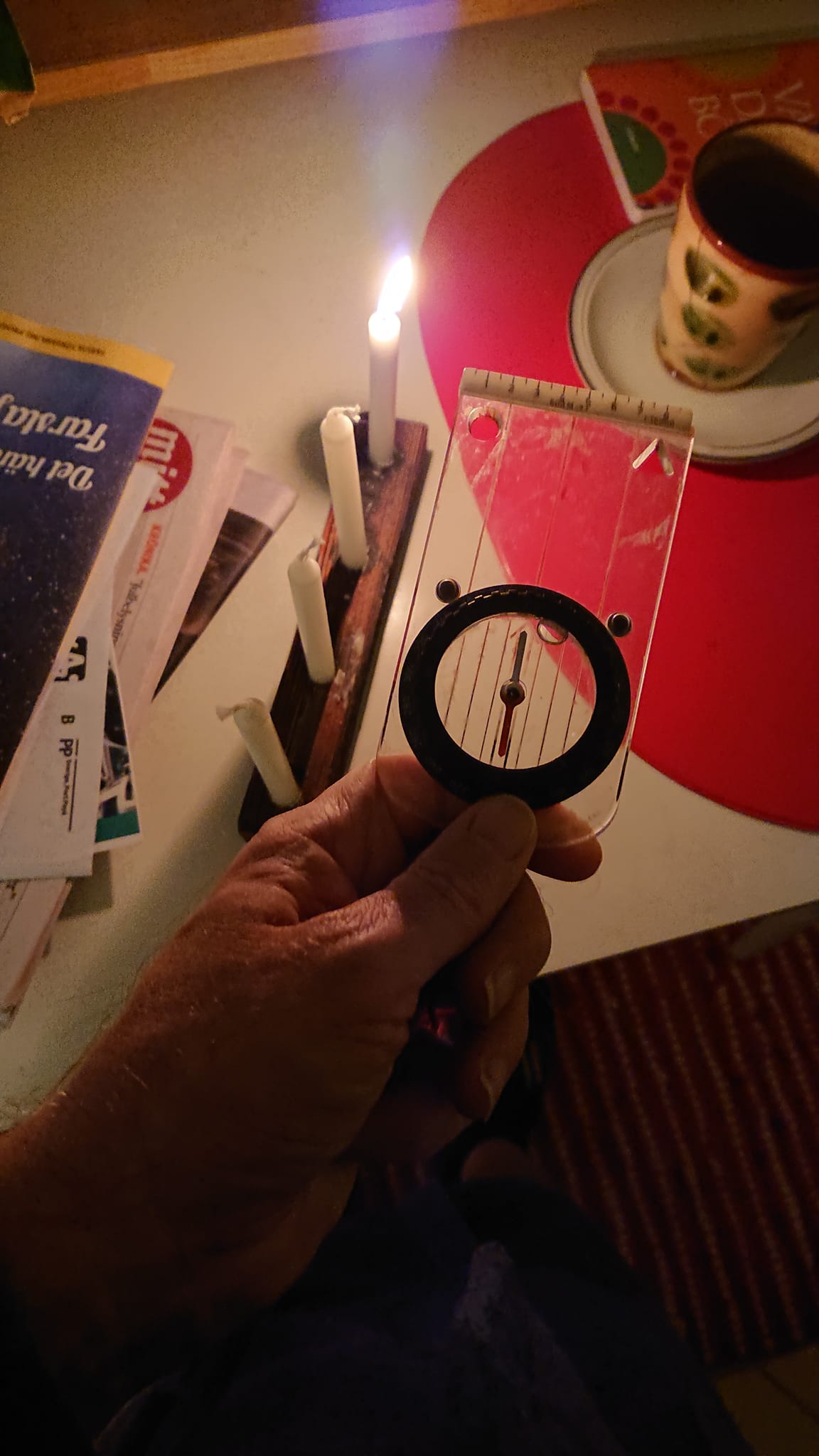 Det mörker som ligger över våra hjärtan och vår del av jorden ska tryckas bort i advent. Glöm inte att vi förbereder oss för att ta emot Herren. Detta symboliseras bäst genom en så kallad adventsljusstake. Det är fyra ljus, en för varje söndag – inte ett för varje advent, se ovan. Ljusstaken ska stå i syd-nordlig riktning. Kompass kan man köpa här. Riktningen är av vikt därför att vi trycker mörkret bort – uppåt. Man kan alltså inte använda en rund adventsljusstake. För den vetgirige vill jag tipsa om en grupp på Facebook som heter Folkkampanjen för advetsljusstakens rätta tändande. Här finner man likasinnade, god kunskap och inspiration.
