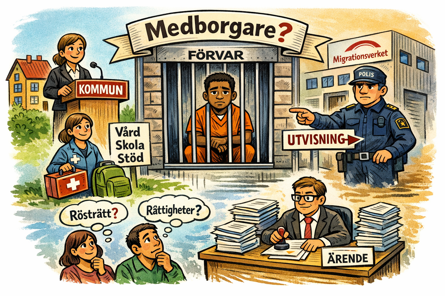 Förvarstagna har ingen rätt till hemtjänst i Åstorps kommun. I ett försök att påverka min kommun skickade jag in ett medborgarförslag till dem. Igår fick jag förhandsinformation om att förslaget kommer avslås. Bland annat på grund av att de förvarstagna inte är medborgare. Det fick mig att fundera kring begreppet medborgare. Antingen är man medborgare i landet eller inte. Som medborgare är begreppet positivt laddad, du har rätt att göra din röst hörd i val, du har rätt till sjukvård och så vidare. Du har också en rad skyldigheter som medborgare. Men begreppet i sig är inkluderande och gemenskapsfrämjande.